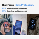 Long hours on your phone can cause eye strain, headaches, and fatigue. Our screen protector blocks harmful blue light and radiation.